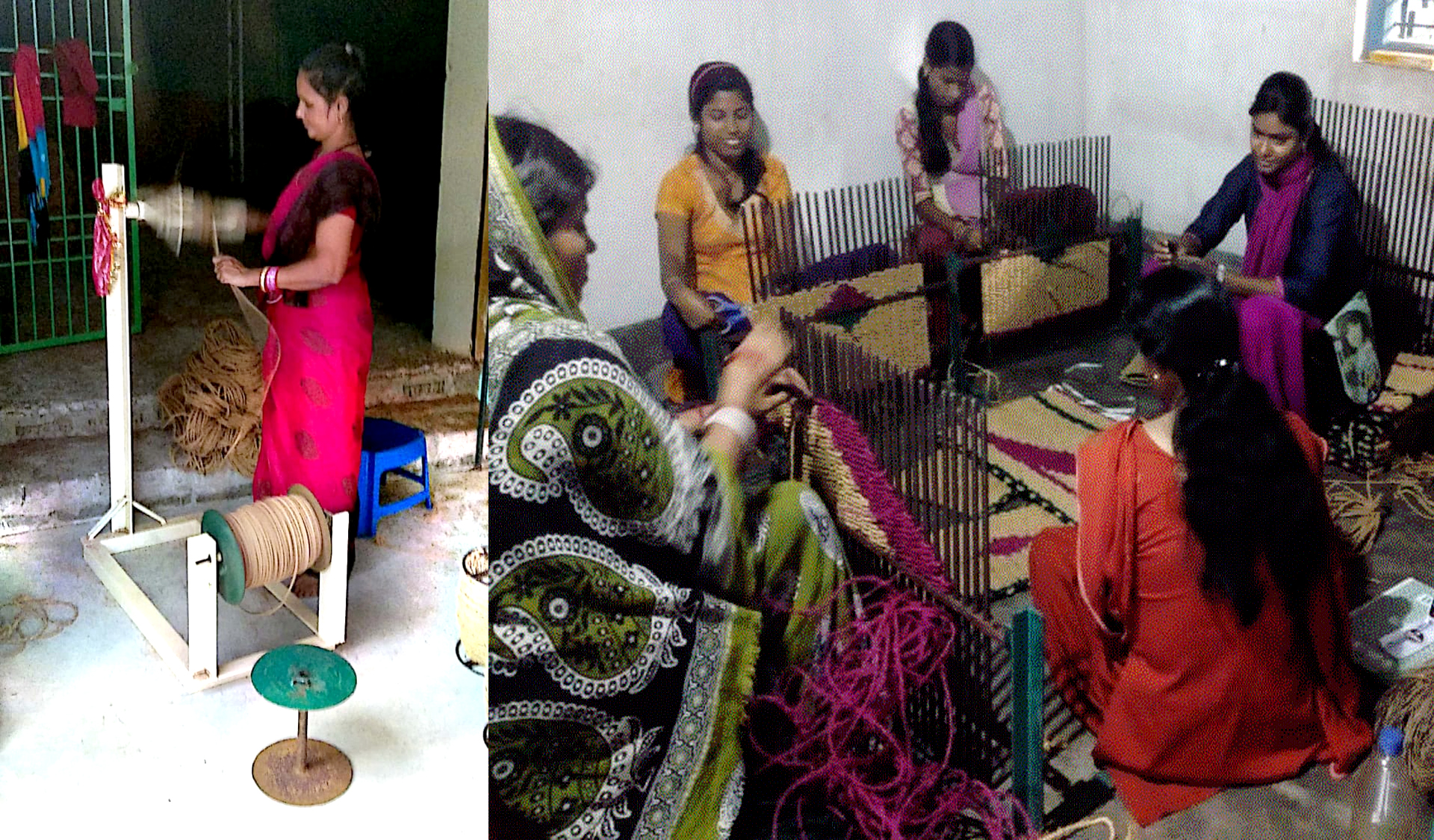 Coir Yarn Product Training by the decision of management "JANASHREE" Sponserd a kata silpa unit named as "JANASHREE KATA SILPA" duly registered by the D.I.C Kendrapara vide Regd No-166/2011 and alo registered under Coir Board (kochi) Bhubaneswar vide Regd No 619/2012.SHG members and individual women members are trained here by the master trainer.The duration of training is two months in each batch our selected M.D Miss Anusmita Behera is controlled, managing and functioning are programme in very well manner. After completion of training the members are establishing their own unit in there own risk and responsibilities by which they are independable sustain to develop their income. The product of the members also trade by our organization in different district of Odisha by means of fair and stalls.